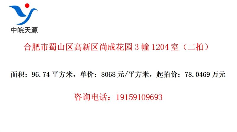 合肥市蜀山区高新区尚成花园3幢1204室(二拍)