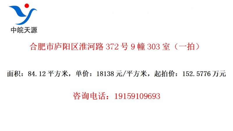 合肥市庐阳区淮河路372号9幢303室(一拍)