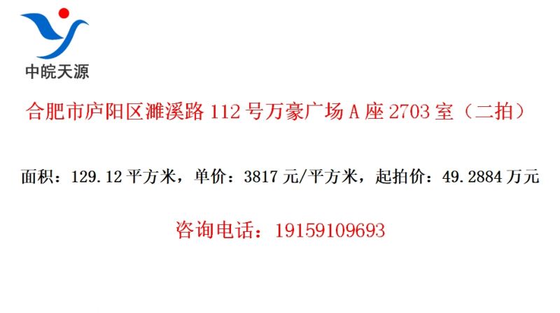 合肥市庐阳区濉溪路112号万豪广场A座2703室(二拍)