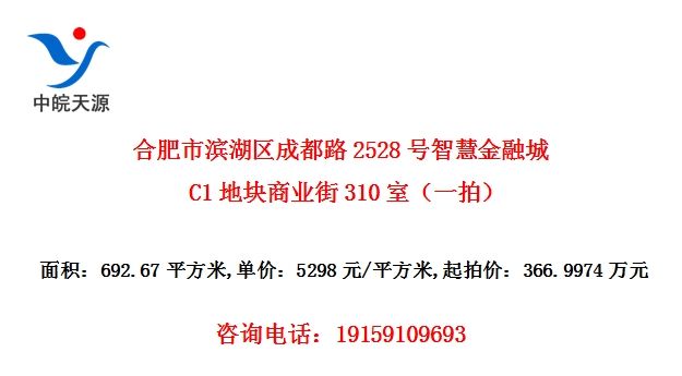 合肥市滨湖区成都路2528号智慧金融城C1地块商业街310室(一拍)