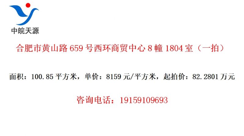 合肥市黄山路659号西环商贸中心8幢1804室(一拍)