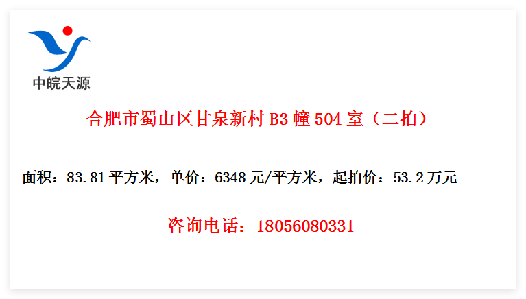 合肥市蜀山区甘泉新村B3幢504室(二拍)