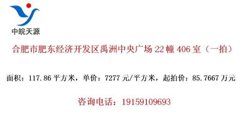 合肥市肥东经济开发区禹洲中央广场22幢406室(一拍)