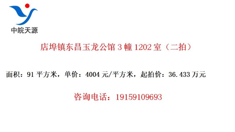 店埠镇东昌玉龙公馆3幢1202室(二拍)