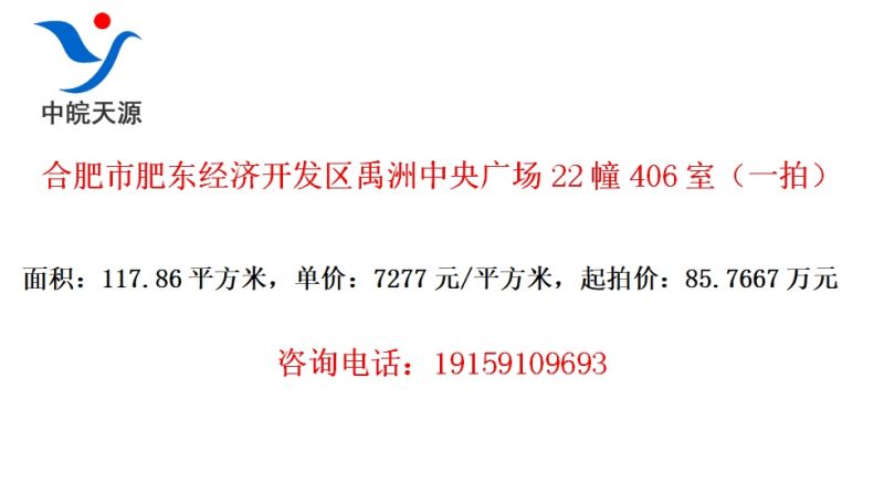 合肥市肥东经济开发区禹洲中央广场22幢406室(一拍)