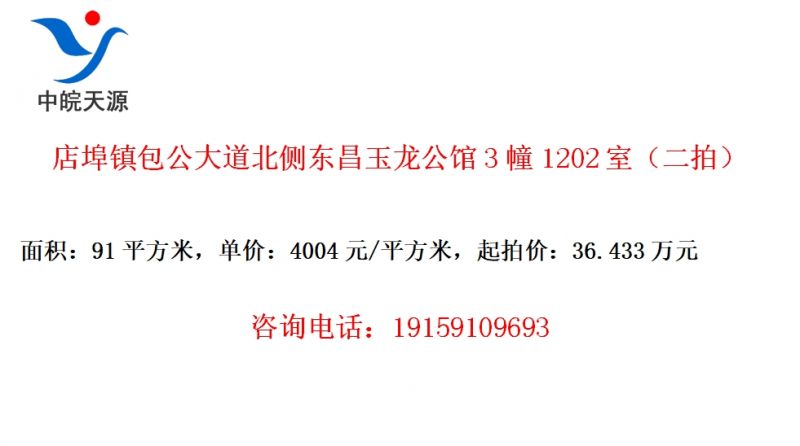 店埠镇包公大道北侧东昌玉龙公馆3幢1202室(二拍)