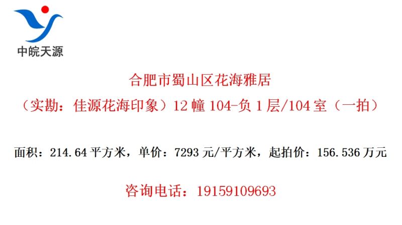 合肥市蜀山区花海雅居(实勘:佳源花海印象)12幢104-负1层/104室(一拍)