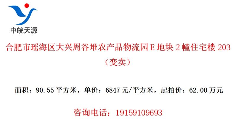 合肥市瑶海区大兴周谷堆农产品物流园E地块2幢住宅楼203(变卖)