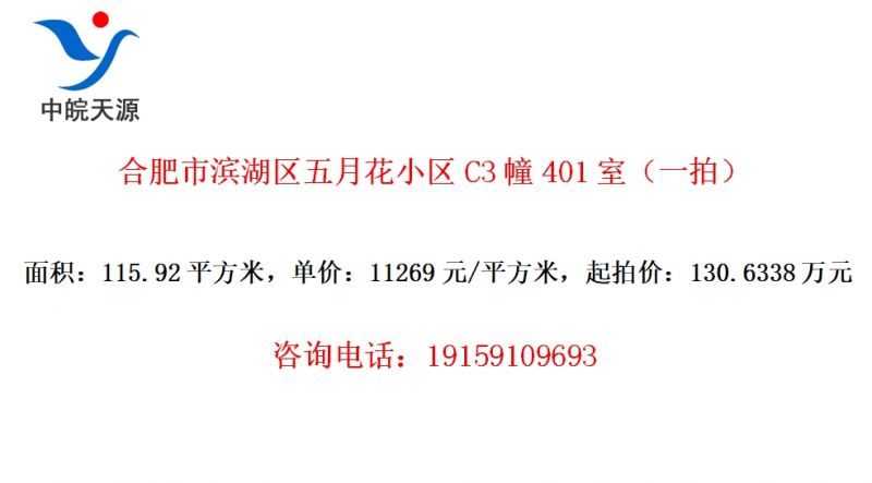 合肥市滨湖区五月花小区C3幢401室(一拍)
