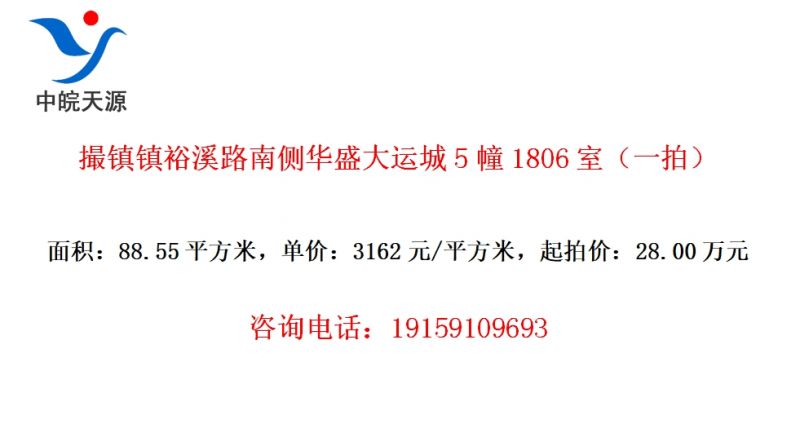 撮镇镇裕溪路南侧华盛大运城5幢1806室(一拍)