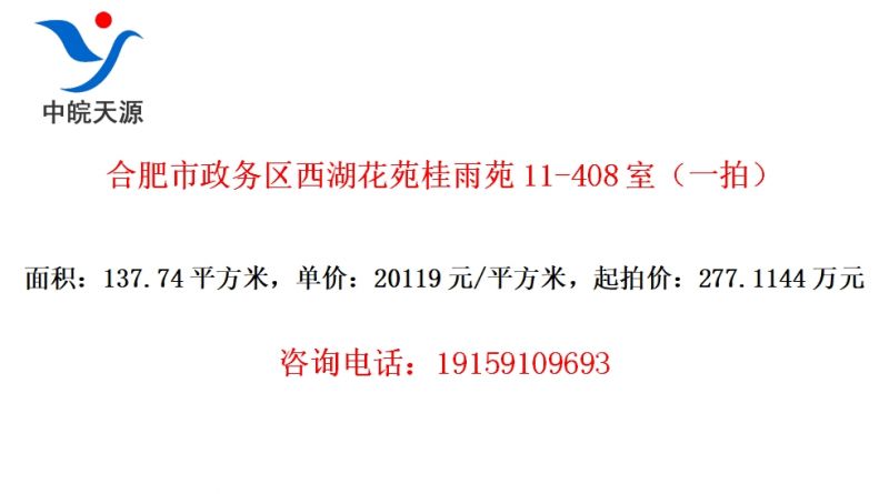 合肥市政务区西湖花苑桂雨苑11-408室(一拍)
