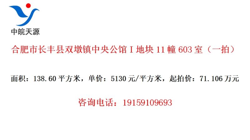 合肥市长丰县双墩镇中央公馆I地块11幢603室(一拍)