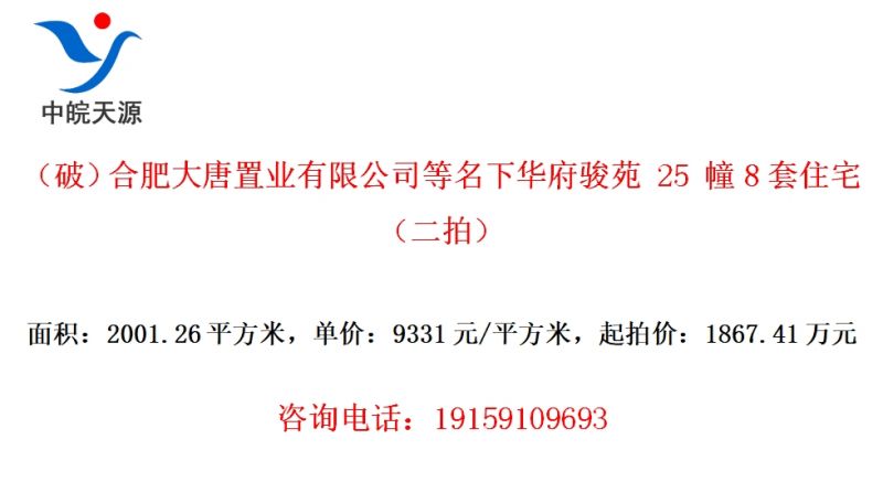 (破)合肥大唐置业有限公司等名下华府骏苑 25 幢8套住宅(二拍)