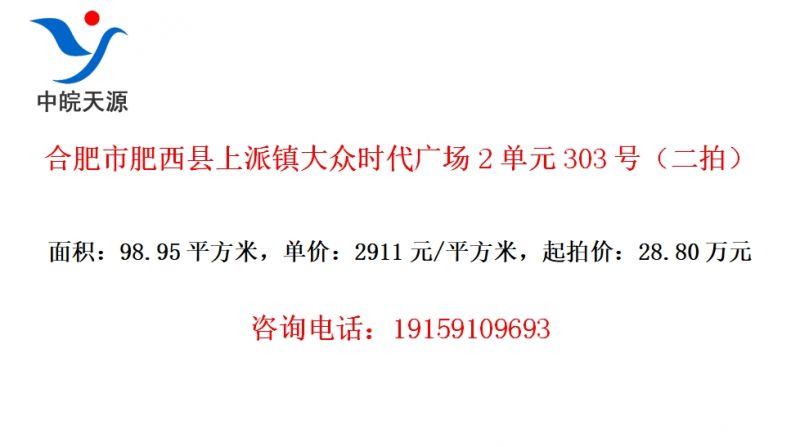 合肥市肥西县上派镇大众时代广场2单元303号(二拍)