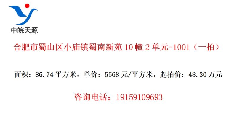 合肥市蜀山区小庙镇蜀南新苑10幢2单元-1001(一拍)