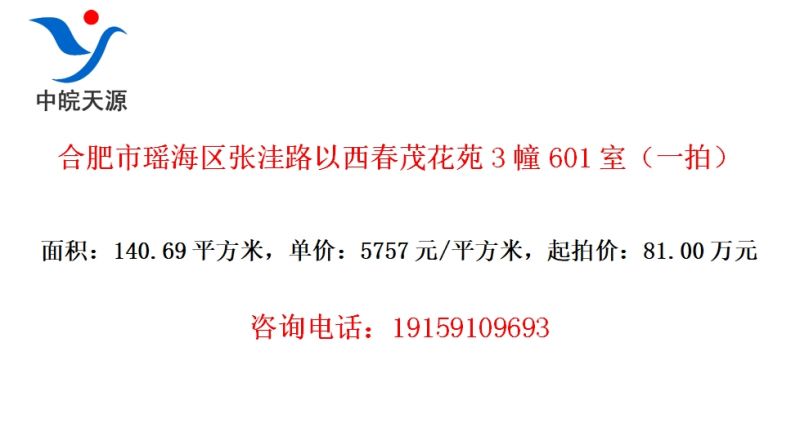 合肥市瑶海区张洼路以西春茂花苑3幢601室(一拍)