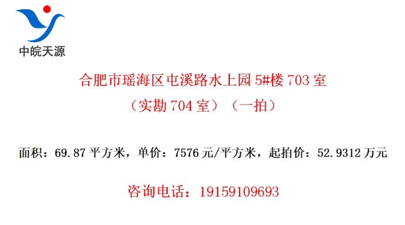 合肥市瑶海区屯溪路水上园5#楼703室(实勘704室)(一拍)