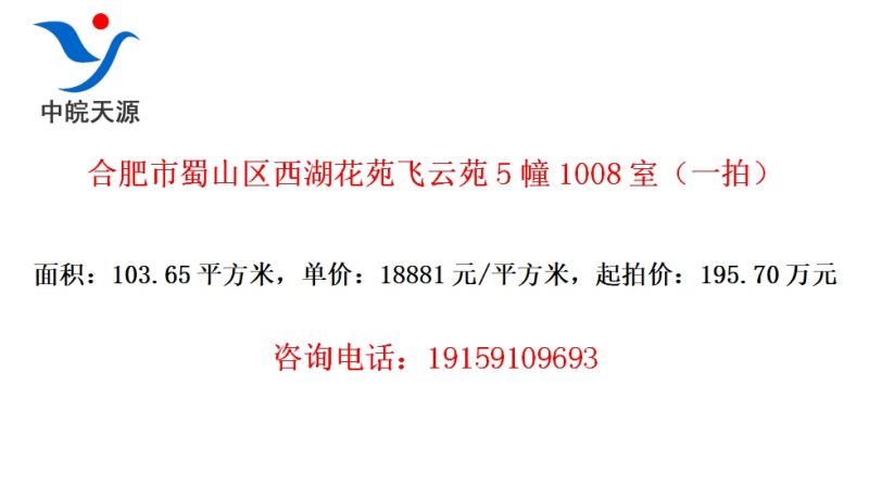 合肥市蜀山区西湖花苑飞云苑5幢1008室(一拍)