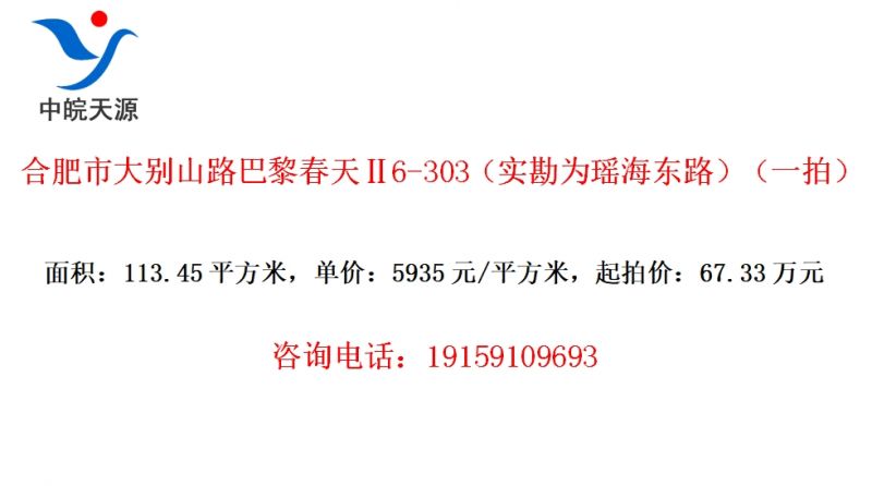 合肥市大别山路巴黎春天Ⅱ6-303(实勘为瑶海东路)(一拍)