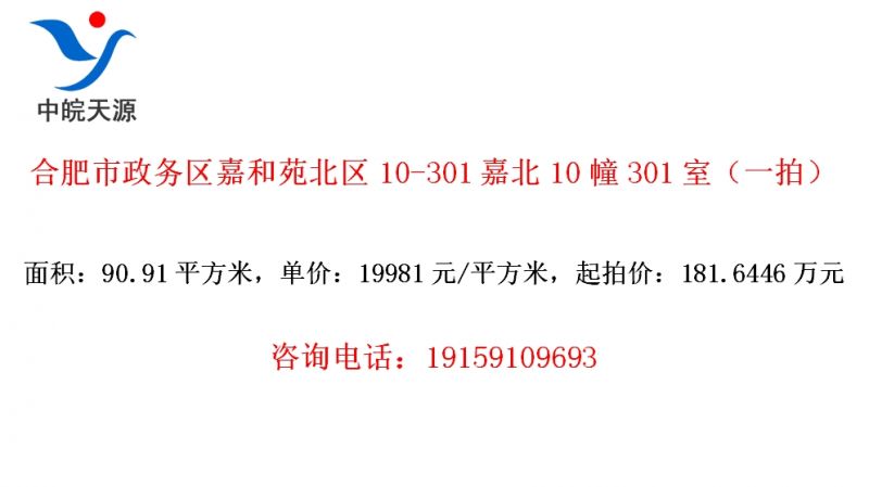 合肥市政务区嘉和苑北区10-301嘉北10幢301室(一拍)
