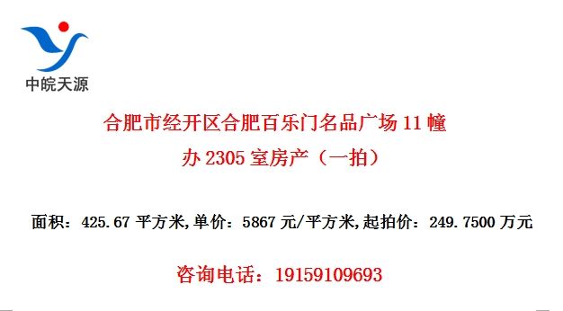 合肥市经开区合肥百乐门名品广场11幢办2305室房产(一拍)