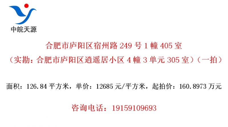 合肥市庐阳区宿州路249号1幢405室(实勘:合肥市庐阳区逍遥居小区4幢3单元305室)(一拍)