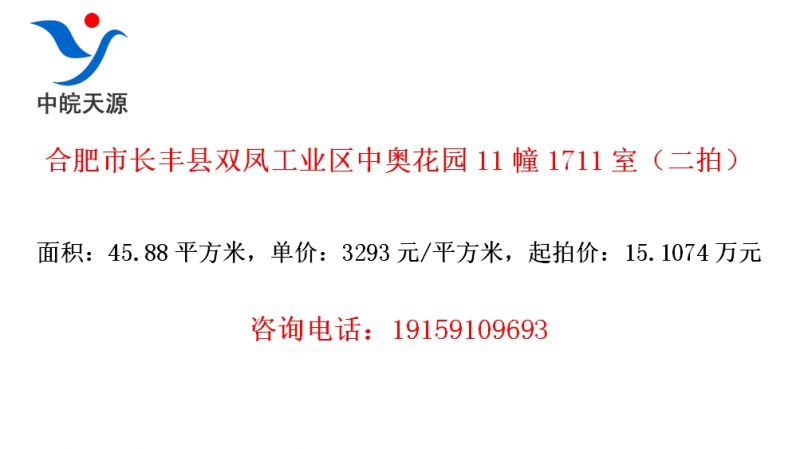 合肥市长丰县双凤工业区中奥花园11幢1711室(二拍)