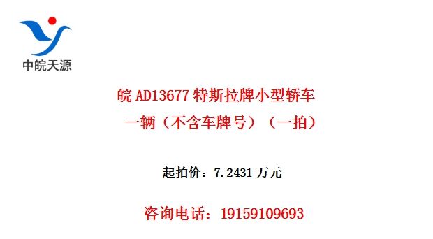 皖AD13677特斯拉牌小型轿车一辆(不含车牌号)(一拍)