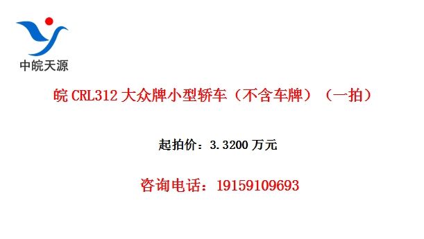 皖CRL312大众牌小型轿车(不含车牌)(一拍)