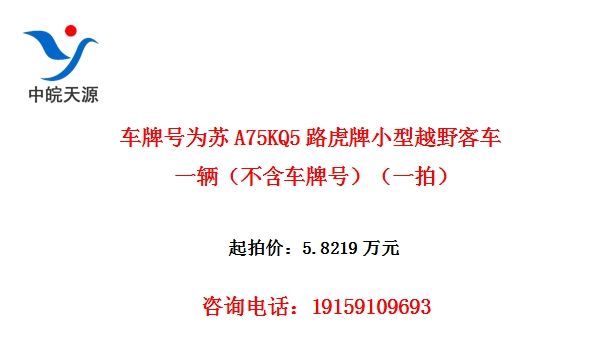 车牌号为苏A75KQ5路虎牌小型越野客车一辆(不含车牌号)(一拍)