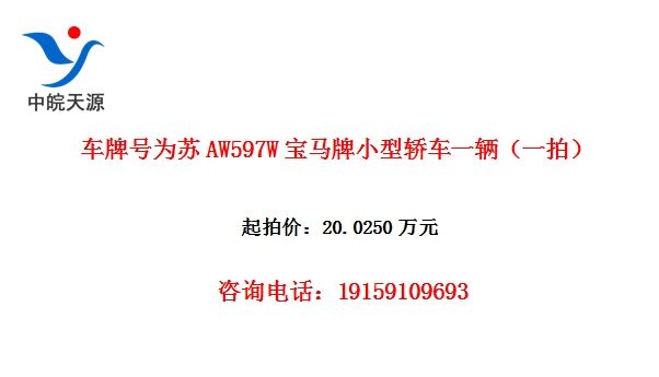 车牌号为苏AW597W宝马牌小型轿车一辆(一拍)