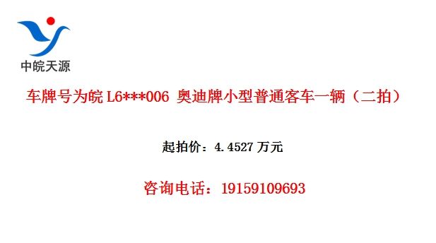 车牌号为皖L6***006 奥迪牌小型普通客车一辆(二拍)