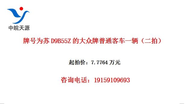 牌号为苏D9B55Z的大众牌普通客车一辆(二拍)