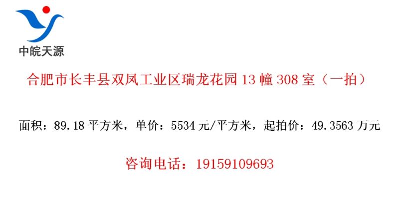 合肥市长丰县双凤工业区瑞龙花园13幢308室(一拍)