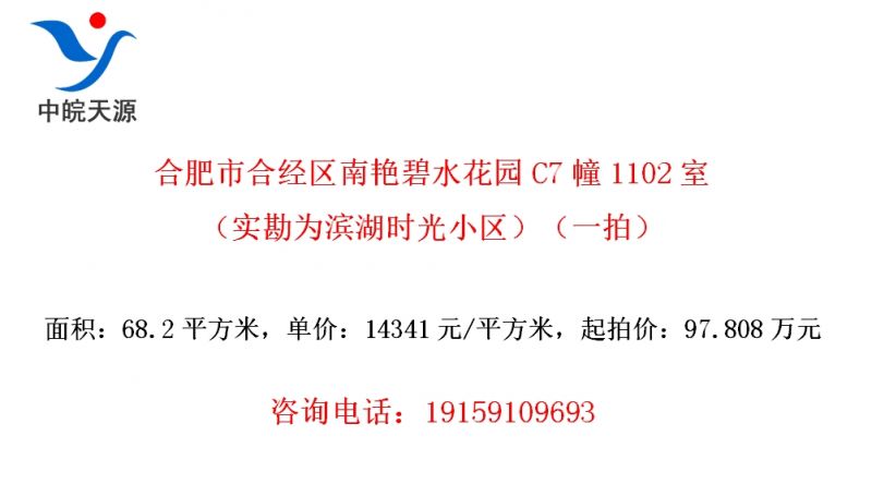 合肥市合经区南艳碧水花园C7幢1102室(实勘为滨湖时光小区)(一拍)
