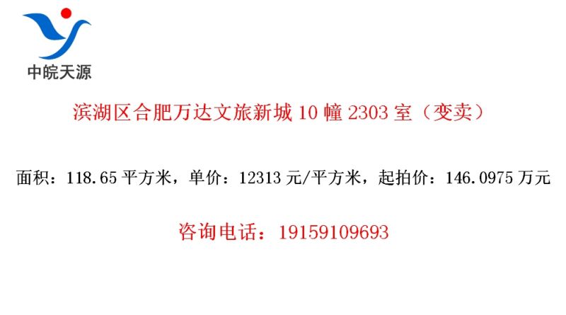 滨湖区合肥万达文旅新城10幢2303室(变卖)