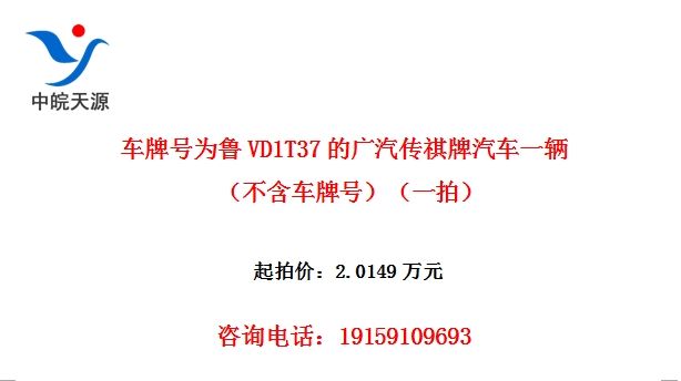 车牌号为鲁VD1T37的广汽传祺牌汽车一辆(不含车牌号)(一拍)
