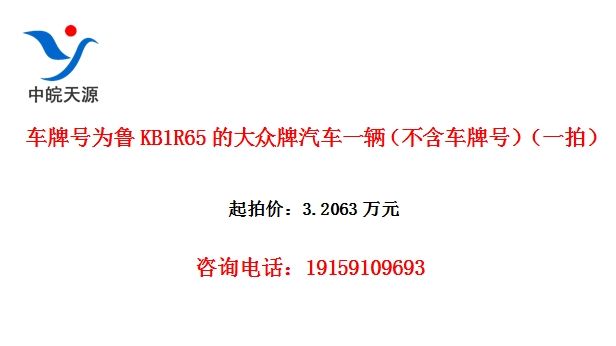 车牌号为鲁KB1R65的大众牌汽车一辆(不含车牌号)(一拍)