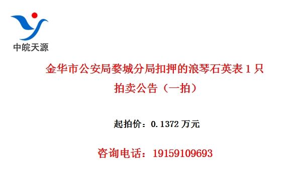 金华市公安局婺城分局扣押的浪琴石英表1只拍卖公告(一拍)