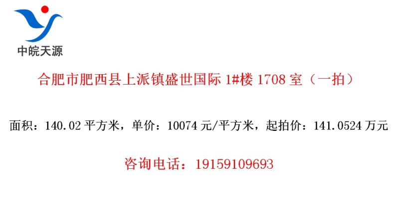 合肥市肥西县上派镇盛世国际1#楼1708室(一拍)