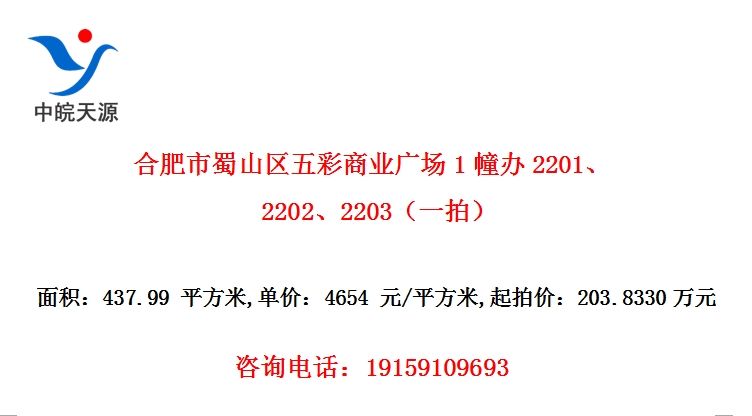 合肥市蜀山区五彩商业广场1幢办2201、2202、2203(一拍)