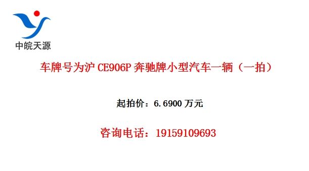 车牌号为沪CE906P奔驰牌小型汽车一辆(一拍)