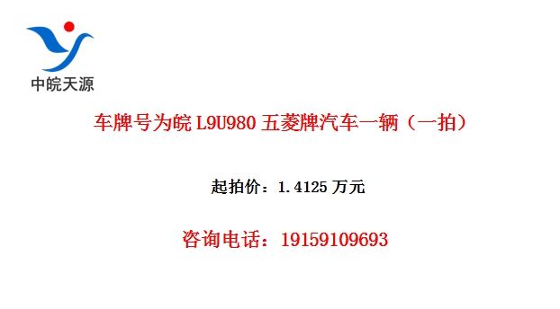 车牌号为皖L9U980五菱牌汽车一辆(一拍)