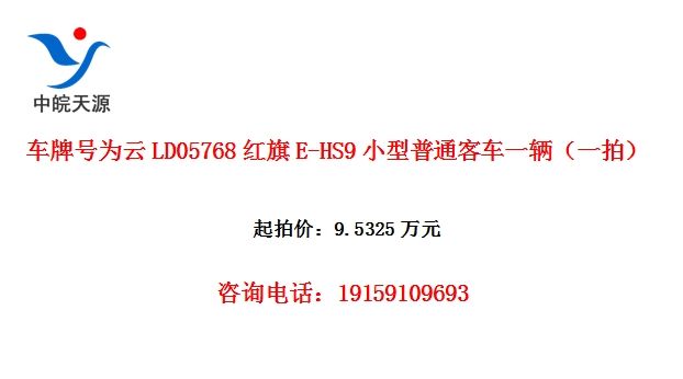 车牌号为云LD05768红旗E-HS9小型普通客车一辆(一拍)