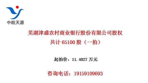 芜湖津盛农村商业银行股份有限公司股权,共计65100股(一拍)