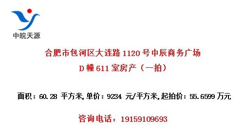 合肥市包河区大连路1120号中辰商务广场D幢611室房产(一拍)