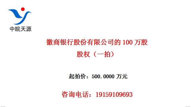 安徽宿松农村商业银行股份有限公司6000000股股东权益价值(一拍)