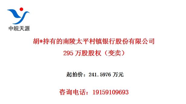 胡*持有的南陵太平村镇银行股份有限公司295万股股权(变卖)