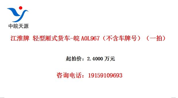 江淮牌 轻型厢式货车-皖A0L967(不含车牌号)(一拍)