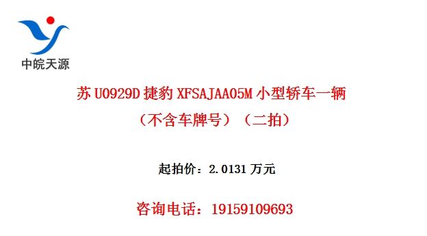 苏U0929D捷豹XFSAJAA05M小型轿车一辆(不含车牌号)(二拍)